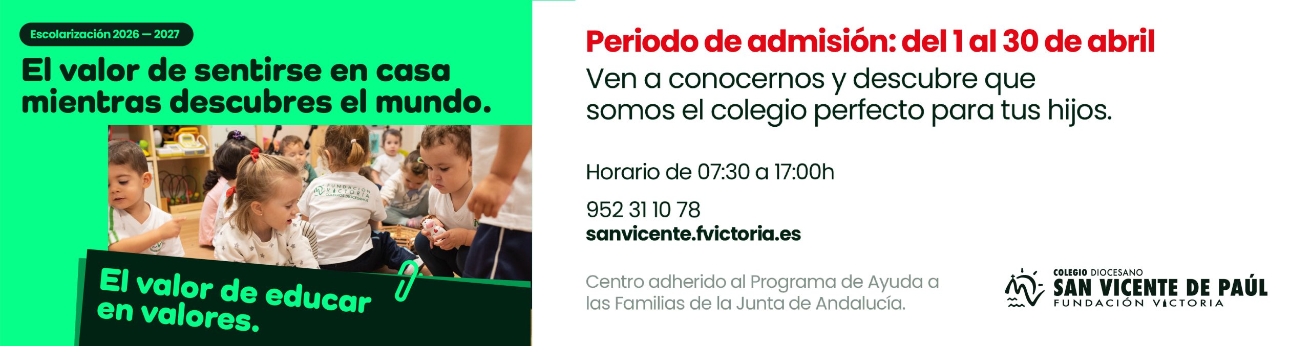 Del 1 al 30 de abril, abierto el proceso de escolarización en el CEI San Vicente de Paúl para el curso 2026-2027